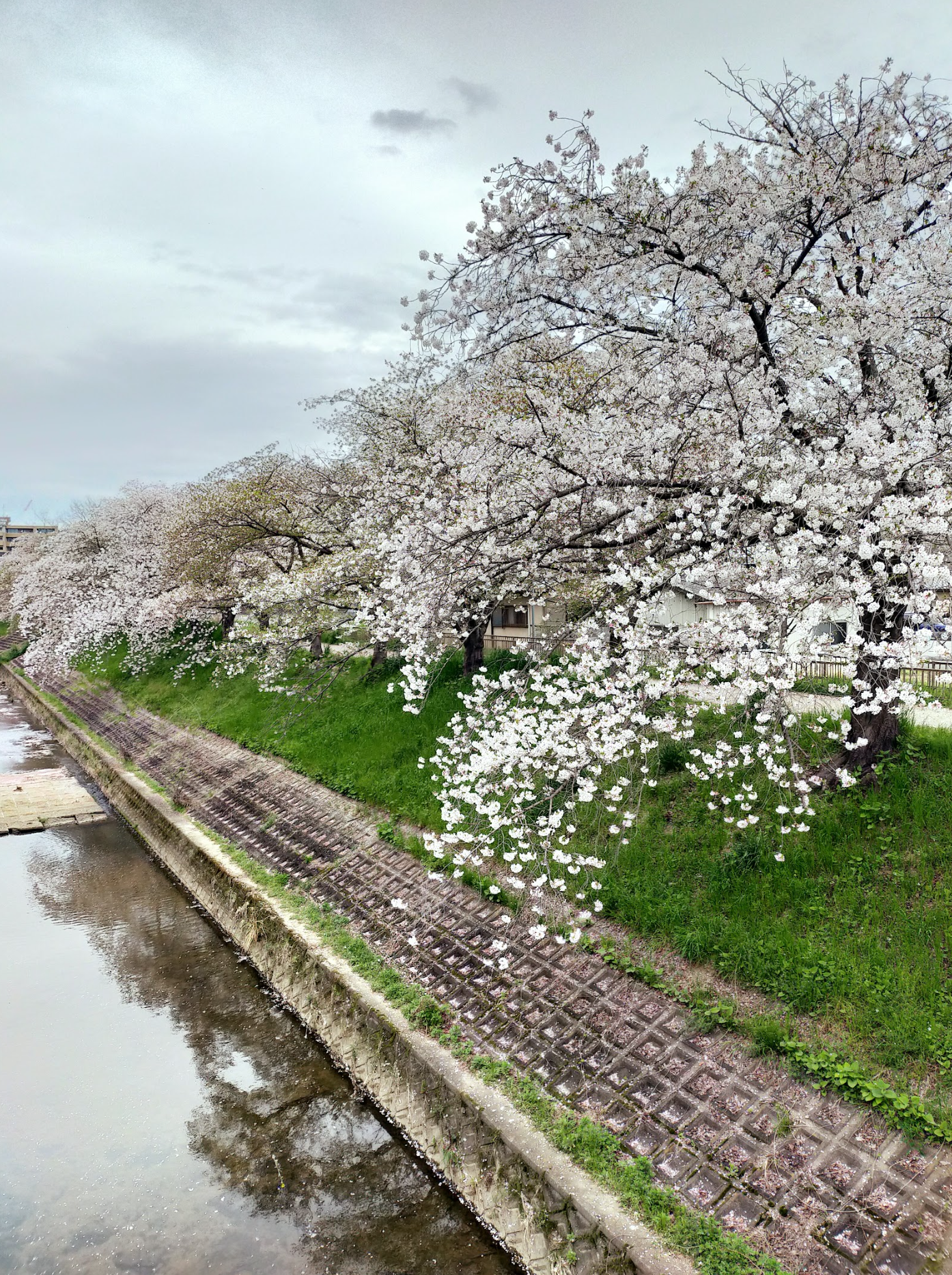 満開の時期は川沿いを歩いたり、川辺に座ってお花見される方も多く賑わっています。