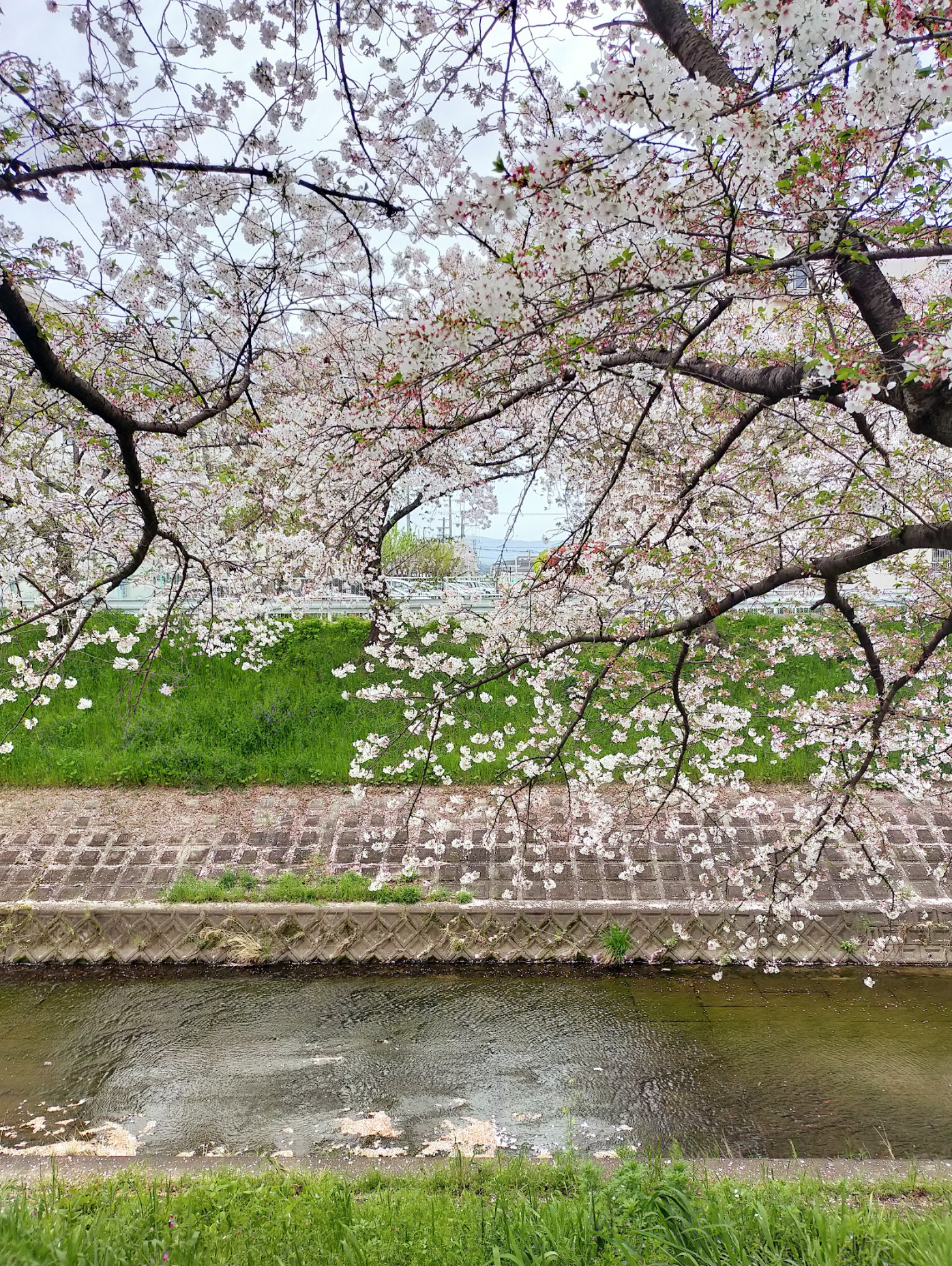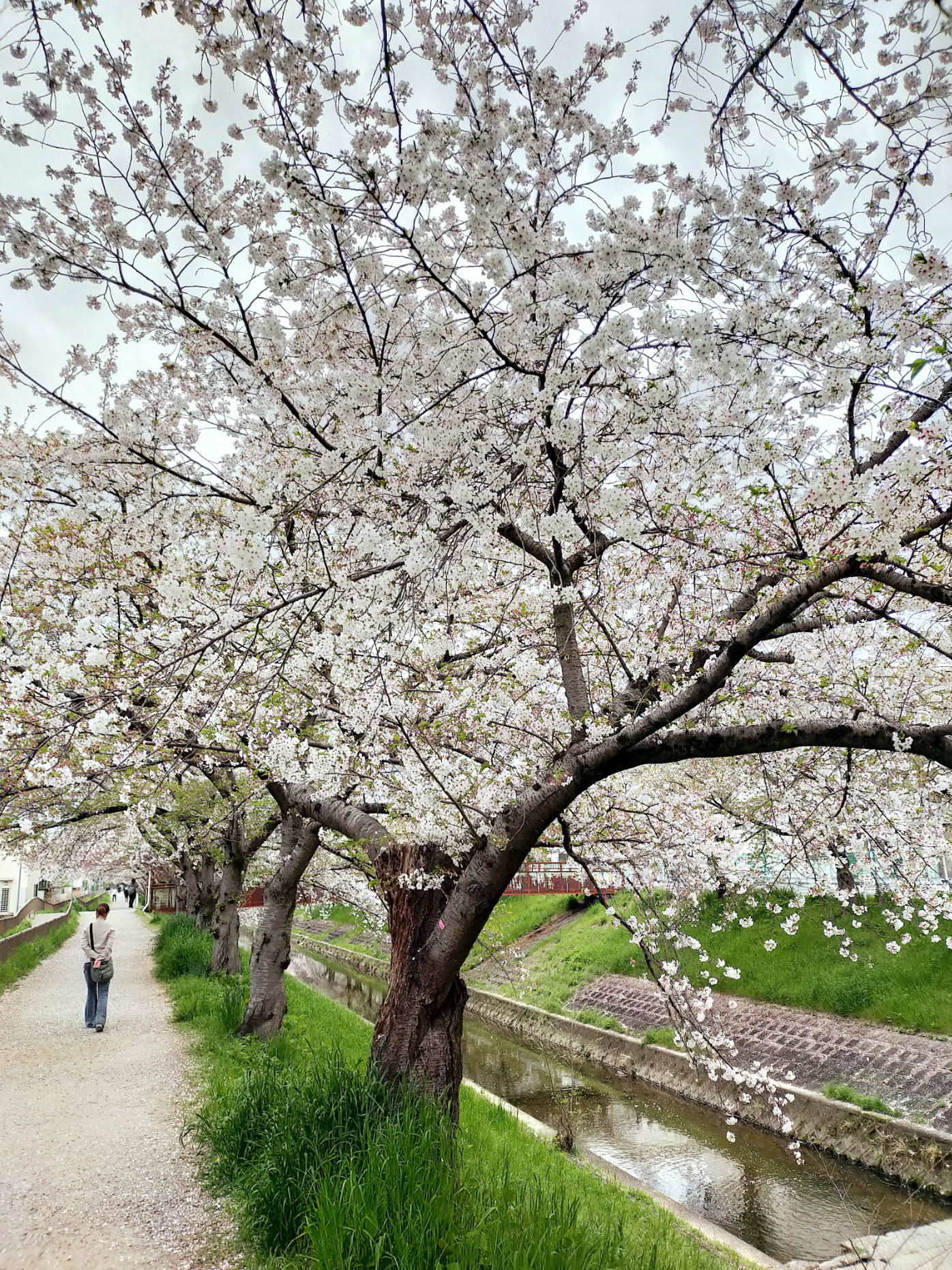 満開の時期は川沿いを歩いたり、川辺に座ってお花見される方も多く賑わっています。