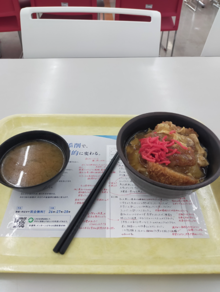 コロッケカレーとカツとじ丼を頼んだんですけど、どちらも美味しくて2つで1000円でお釣りがきたので、学食らしく大変リーズナブルでした。