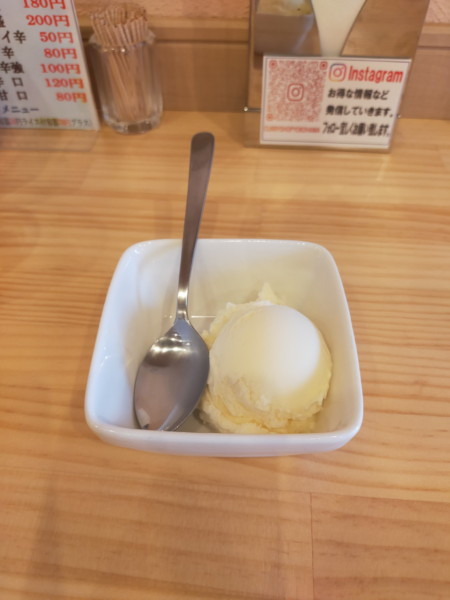 さらに食後にはホットコーヒーかアイスのサービスもいただけたので、バニラアイスを美味しいいただきました。